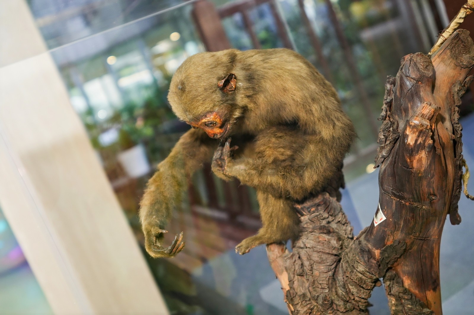 “海南长臂猿的热带雨林之旅”主题展被与会嘉宾誉为一次“好看、好奇、好玩”的科学旅程。展览的“好看”体现在精巧的空间设计和珍贵实体标本上。在一平米的微缩场景中,学生们可近距离观赏海南长臂猿实体标本,并与中华穿山甲、白鹇、豹猫等珍稀动物标本“不期而遇”。这些物种共同构建了一个立体的热带雨林生态系统,海南长臂猿作为旗舰种,其生存空间的保护伞也同时庇护着中华穿山甲等其他物种,巧妙地传递了“保护旗舰物种就是保护整个生态系统”的深层理念。